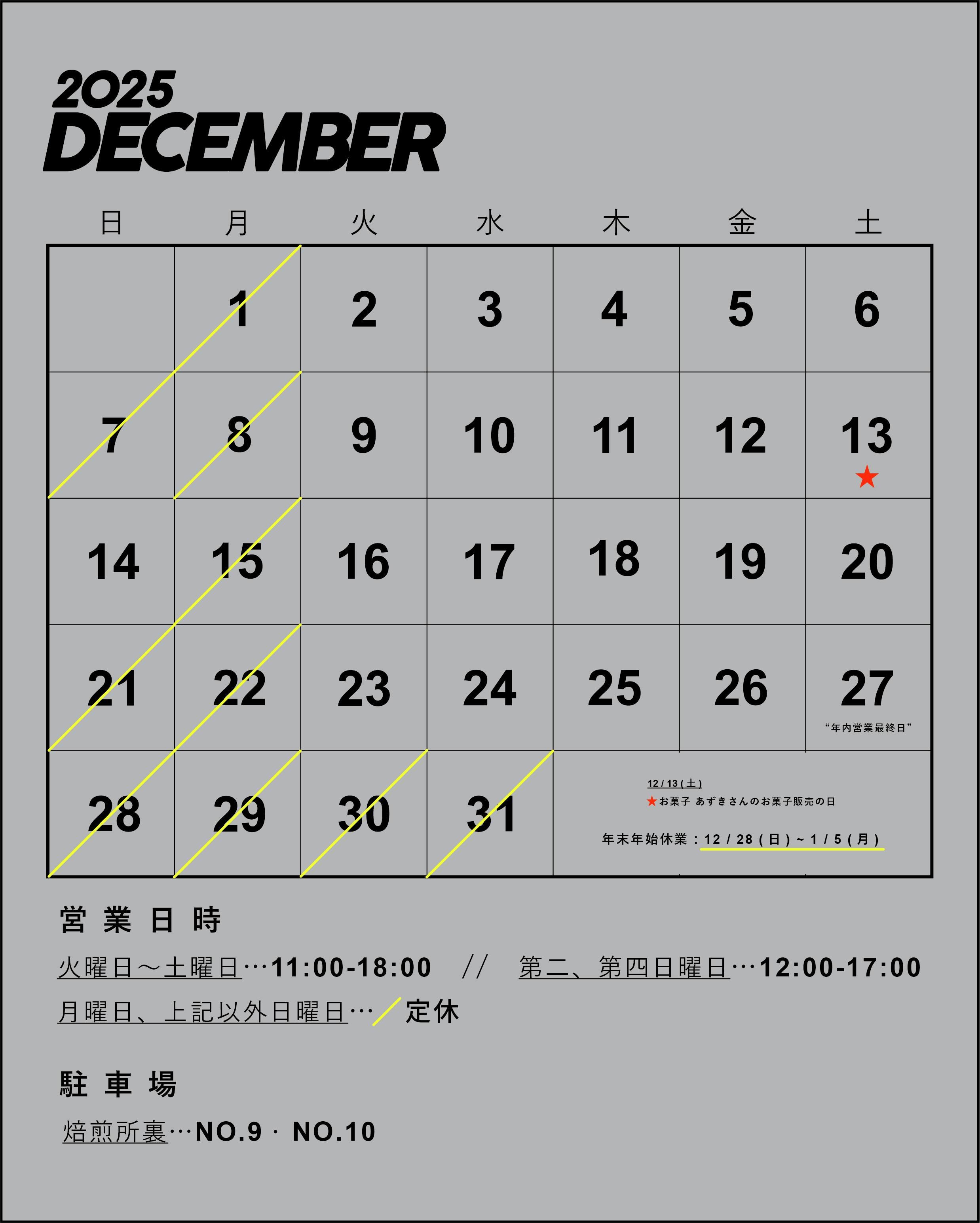 日常的に高品質でフレッシュなコーヒーを! 「飲むといい閃きがあるかもしれない」 マイクロロースター”中山珈琲焙煎所”よりニュースタンダードなコーヒービーンズを全国にお届けします。 [実店舗] 火曜日〜土曜日→11:00-18:00 // 第二・第四日曜日→12:00-17:00 月曜日・上記以外日曜日→定休日 // 合計400g以下の場合は、送料265円のメール便。 // 合計401g以上の場合は、ヤマト運輸さんの宅急便。 // 合計7,000円以上お買い上げの場合は、当方にて送料を負担致します。 ご購入後はshop@nakayamacoffee.shop-pro.jpより購入内容やお支払いに関するメールが送られます。 受信していただけますようメーラーの迷惑メールフォルダやフィルタ設定などの確認をお願い致します。 |