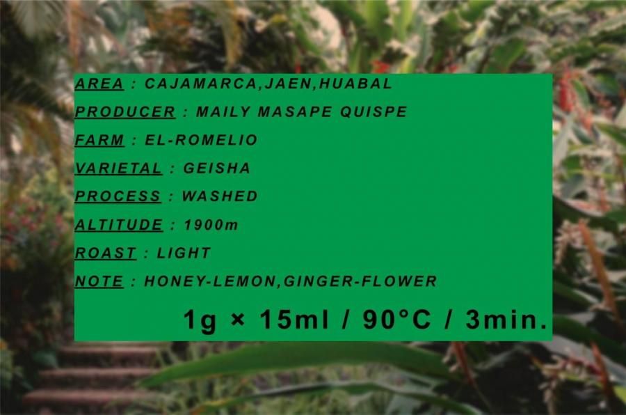 ペルーのマイルドですっきりとした味わいと、ゲイシャ種特有のフレーバーが楽しめます。